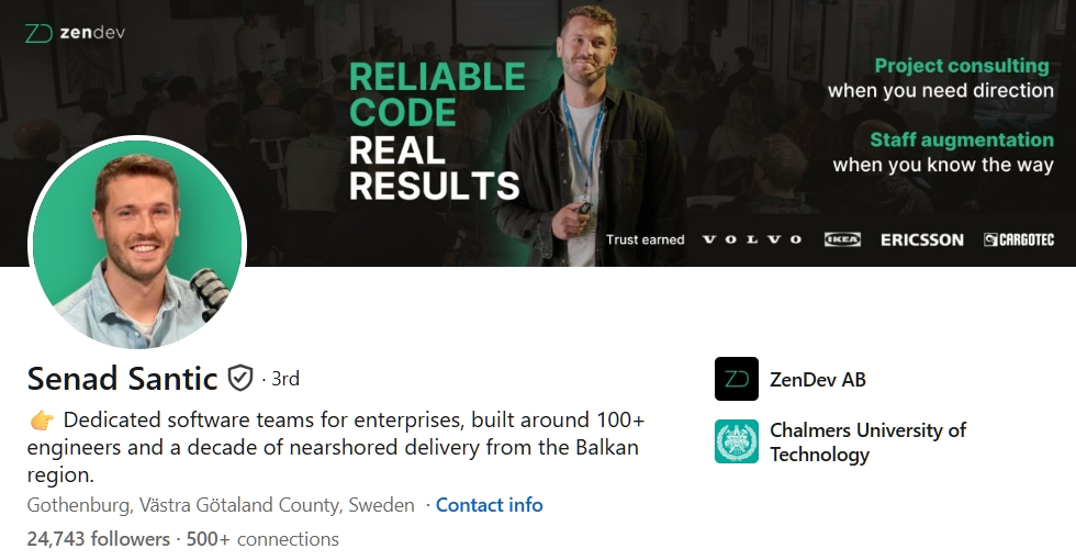 Zendev functions as a software development agency with roots in Sweden and Bosnia.