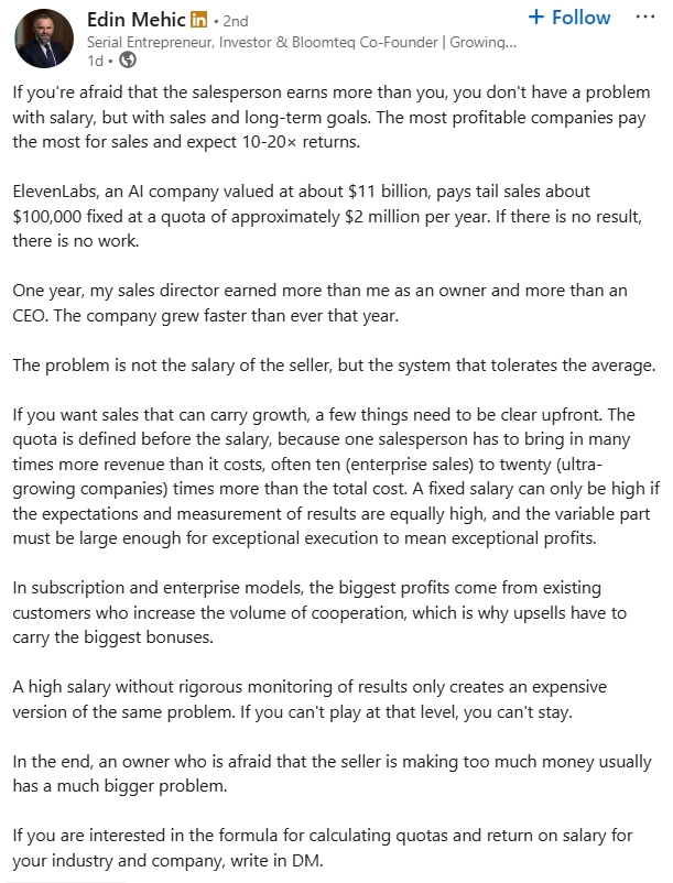 Edin focuses his posts on the mindset required for successful entrepreneurship.