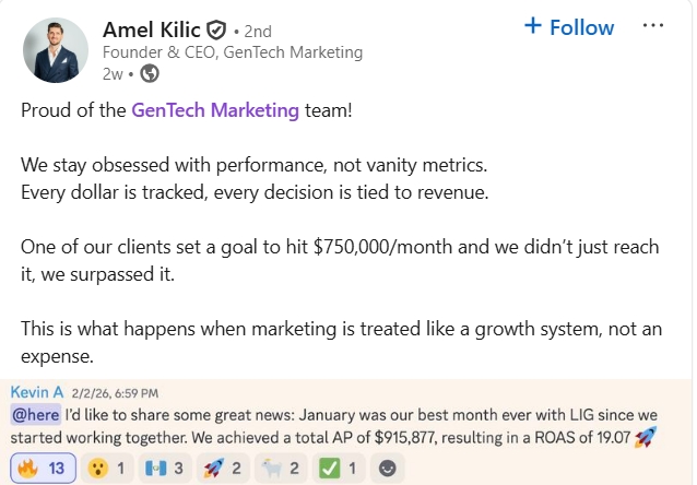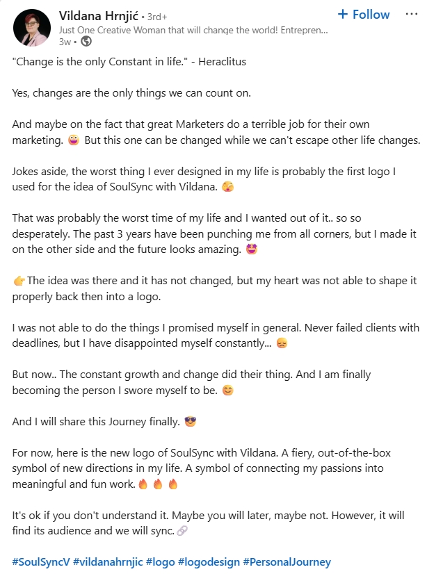 Vildana shares posts about team management and the growth of her company.