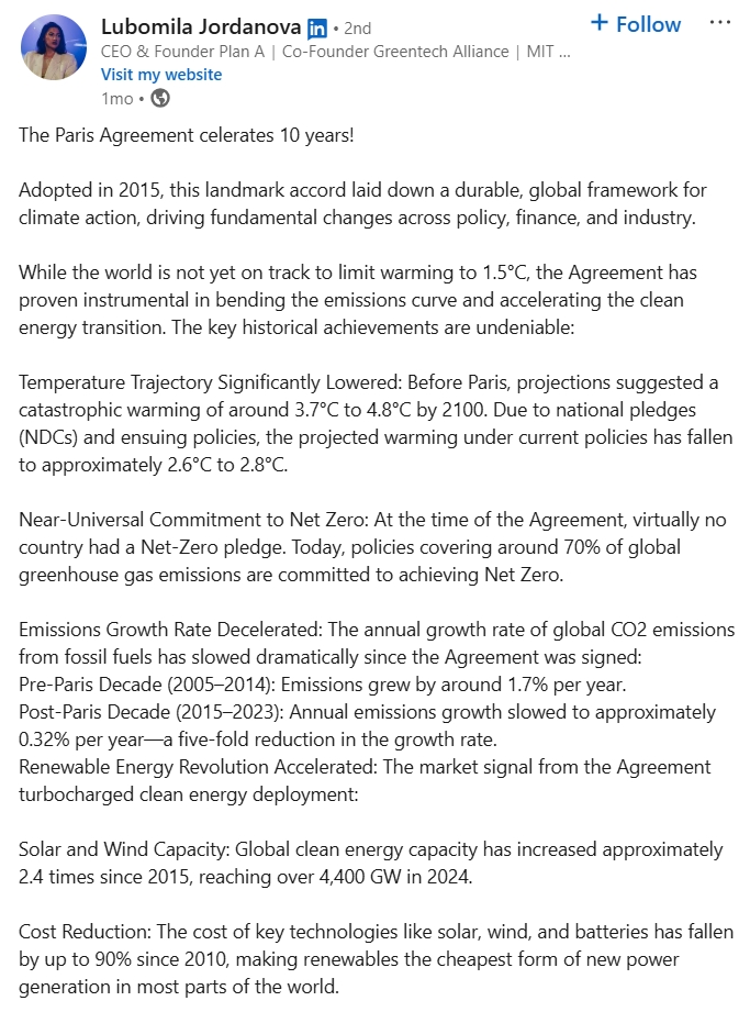 Her content frequently showcases her appearances at global tech conferences discussing climate data.