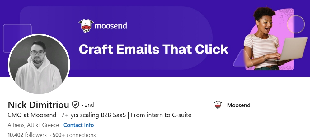 He’s listed on Moosend’s author page as the company’s marketing lead and appears across Moosend content and talks about growing acquisition channels.