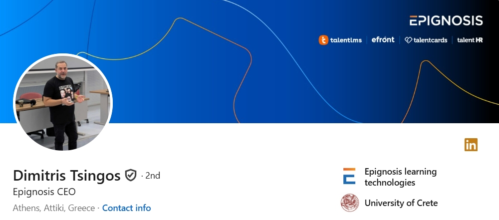 Today he’s listed as CEO and co-founder of Epignosis, the company behind TalentLMS, and he often appears as a speaker on product and learning-technology stages.
