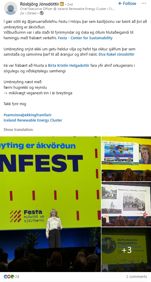 Rósbjörg Jónsdóttir – CEO, Iceland Renewable Energy Cluster