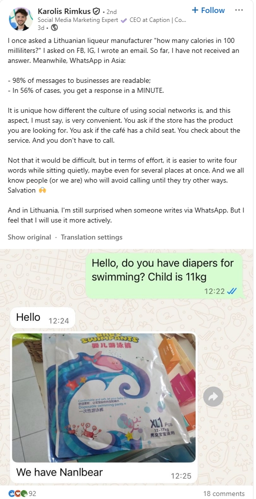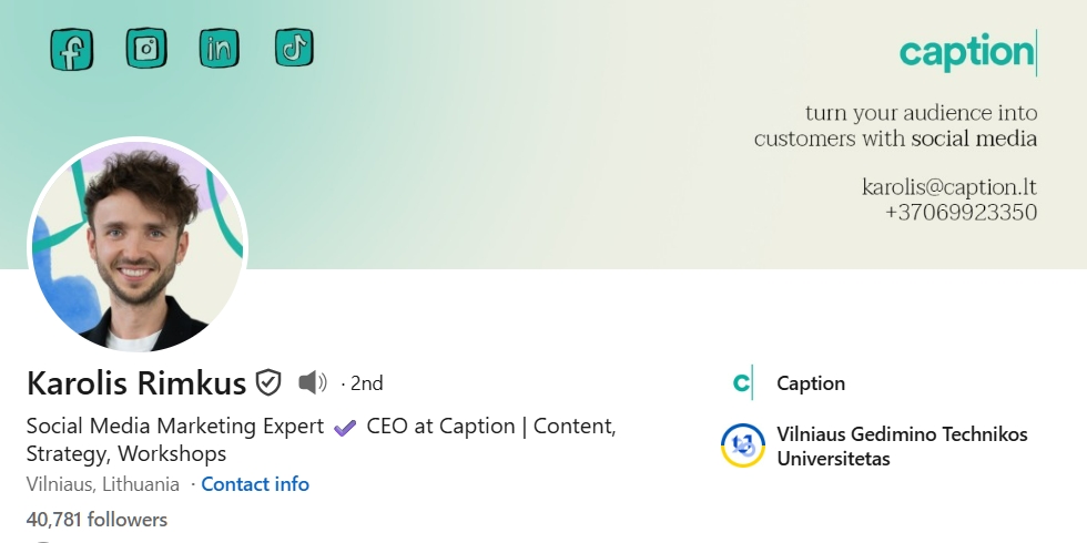 Karolis posts updates every day about his work life. His feed consists of marketing tips and personal stories.