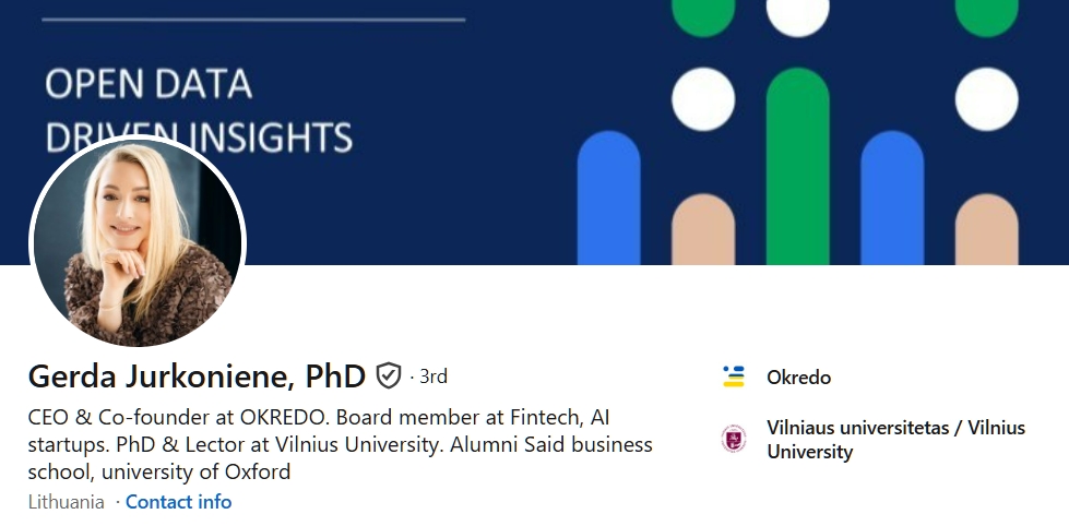 Gerda holds a PhD and co-founded OKREDO to make financial data accessible to small businesses. She believes that open data allows firms at OKREDO and beyond to assess risks properly.