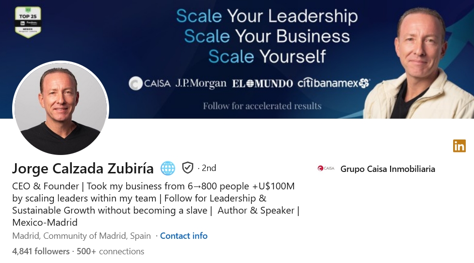Who should follow Jorge: Entrepreneurs, business leaders, mid-career professionals looking to accelerate their growth, and anyone navigating the challenges of scaling a company or leading teams — primarily Spanish-speaking audiences in Latin America and Spain.
