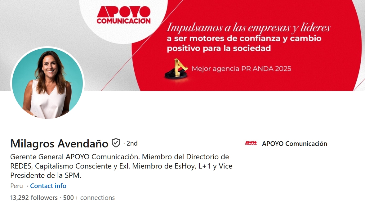 Core Value Proposition: Milagros positions herself as a business leader who uses LinkedIn not just to speak about her industry, but to advocate for a more responsible private sector and a stronger civil society. With over 13,000 followers, she has built a reputation as a candid, civic-minded voice in the Peruvian business community.