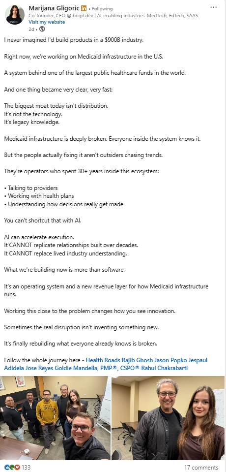 - Medicaid infrastructure post: the real moat isn't technology, it's 30+ years of lived industry knowledge